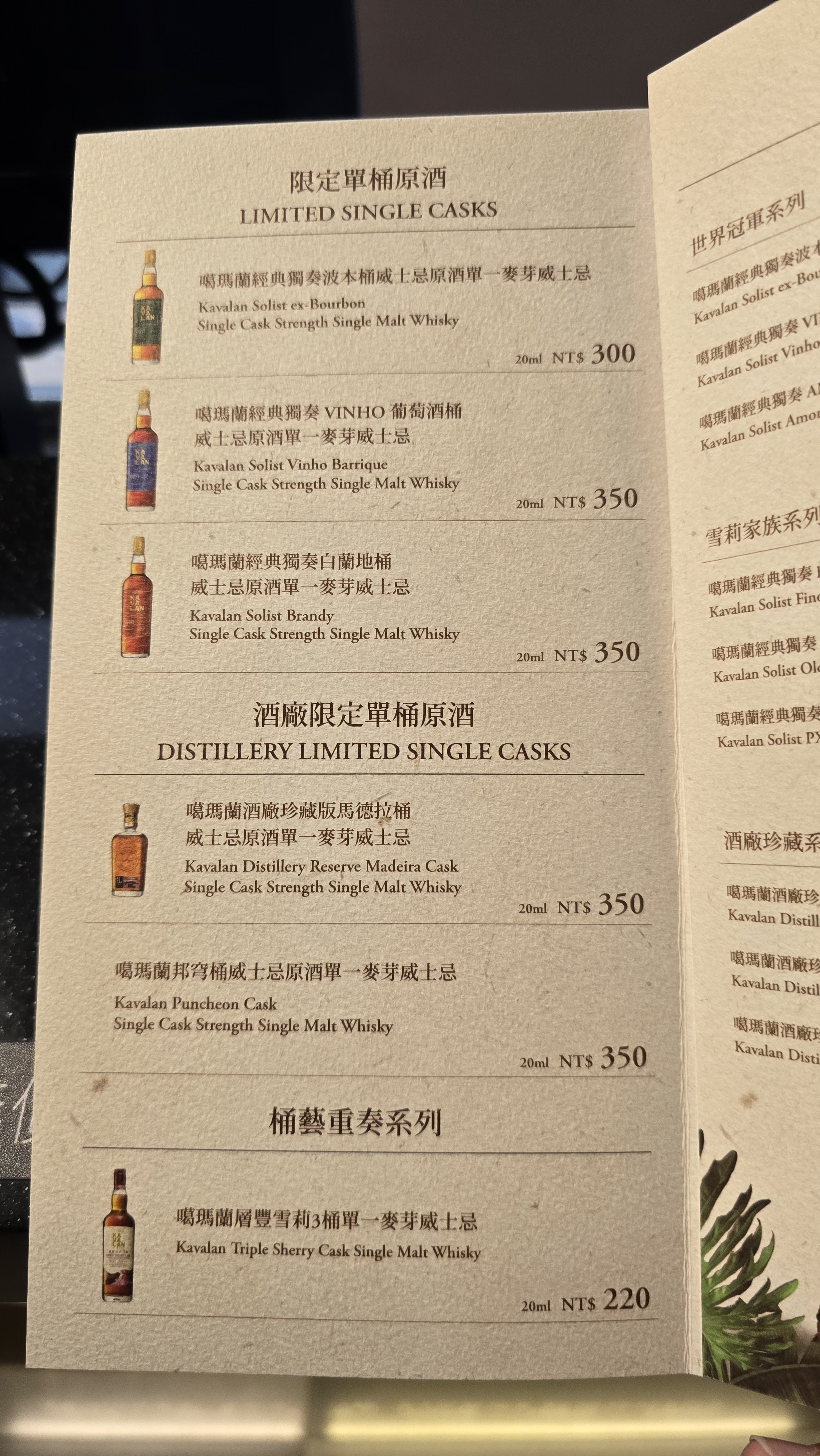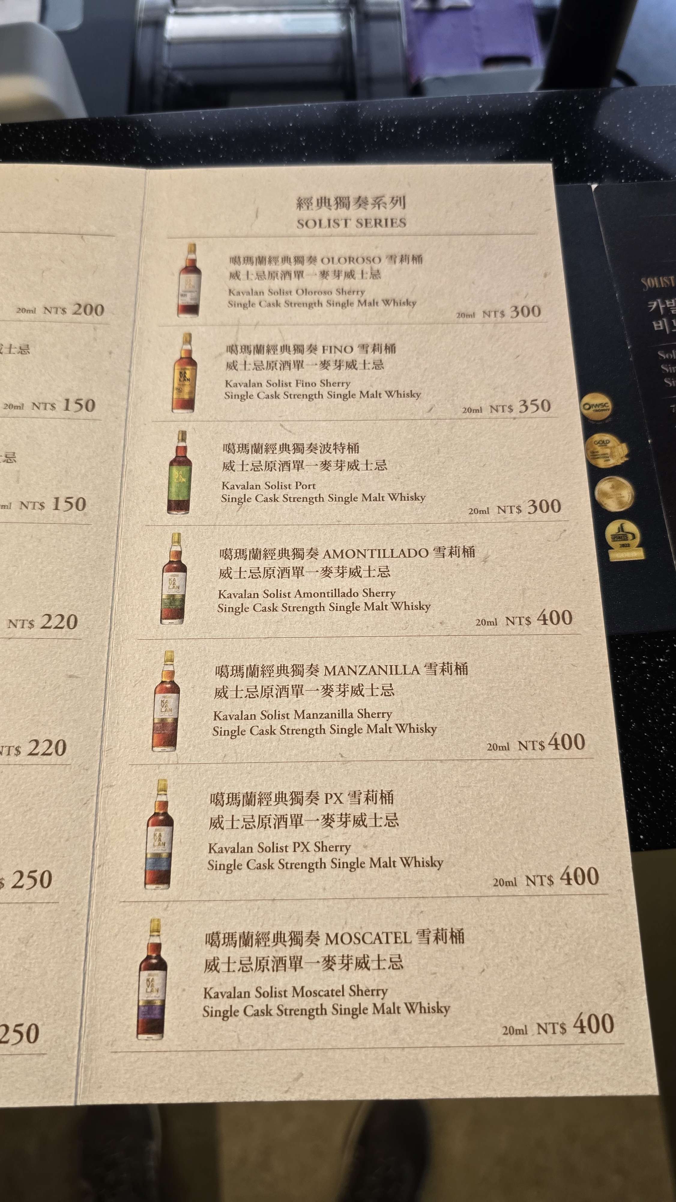 시음주는 100대만달러, 200대만달러 가 있구요. 각잔 금액입니다.