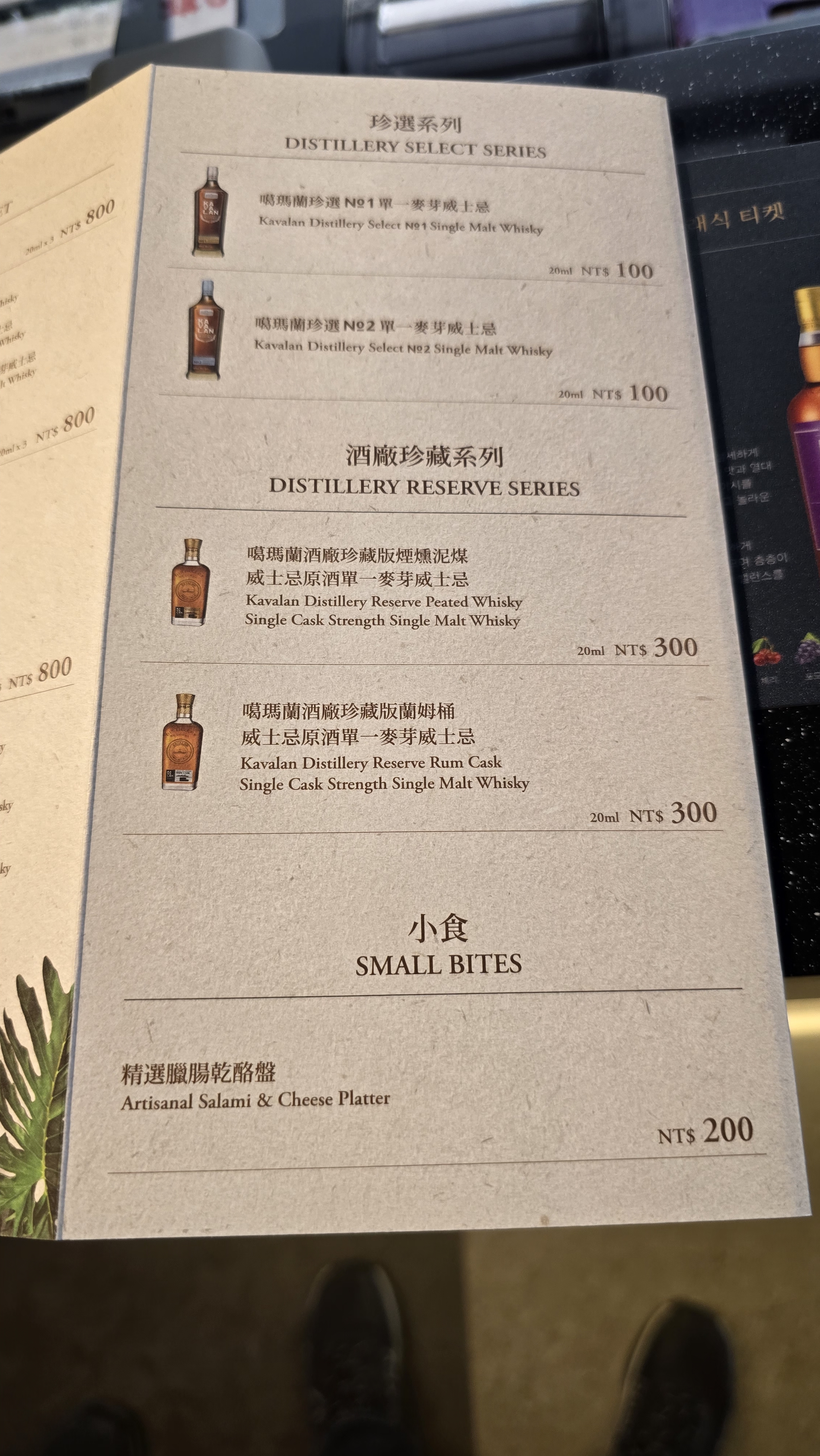 2층에 가면 3종의 고급 위스키 800대만달러에 시음 가능합니다.